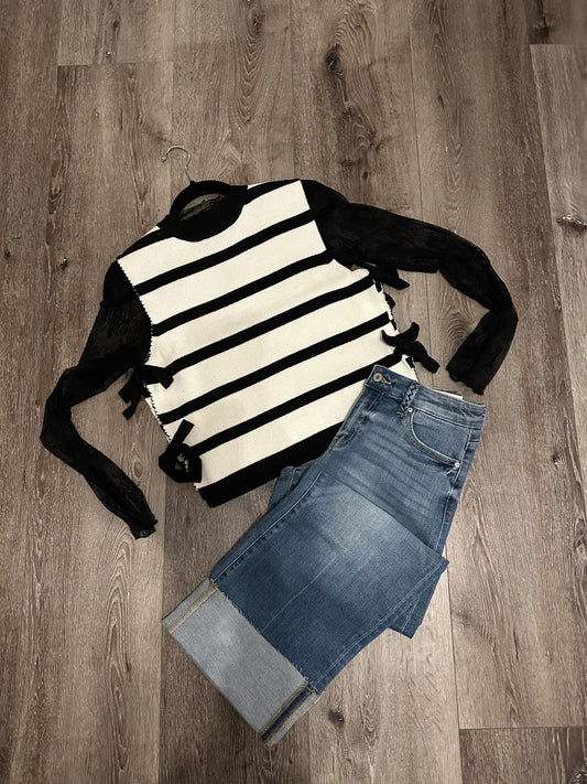 BLACK & WHITE SIDE TIE STRIPE SWEATER VEST